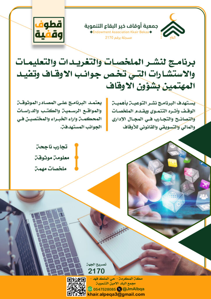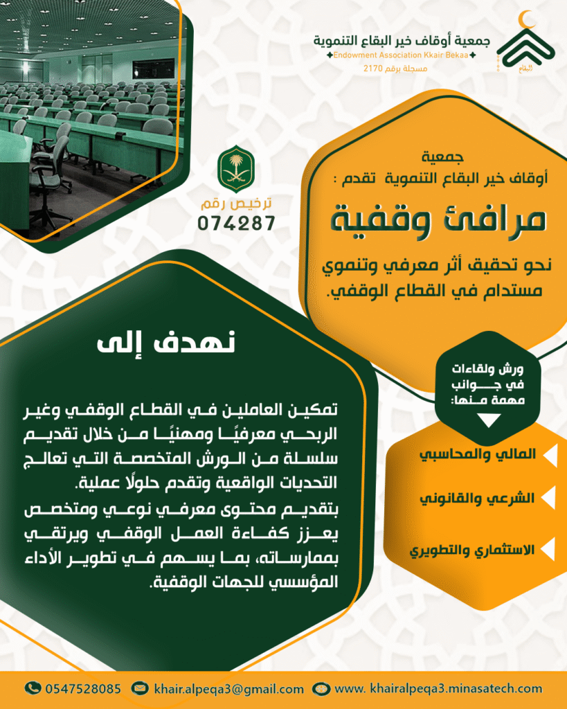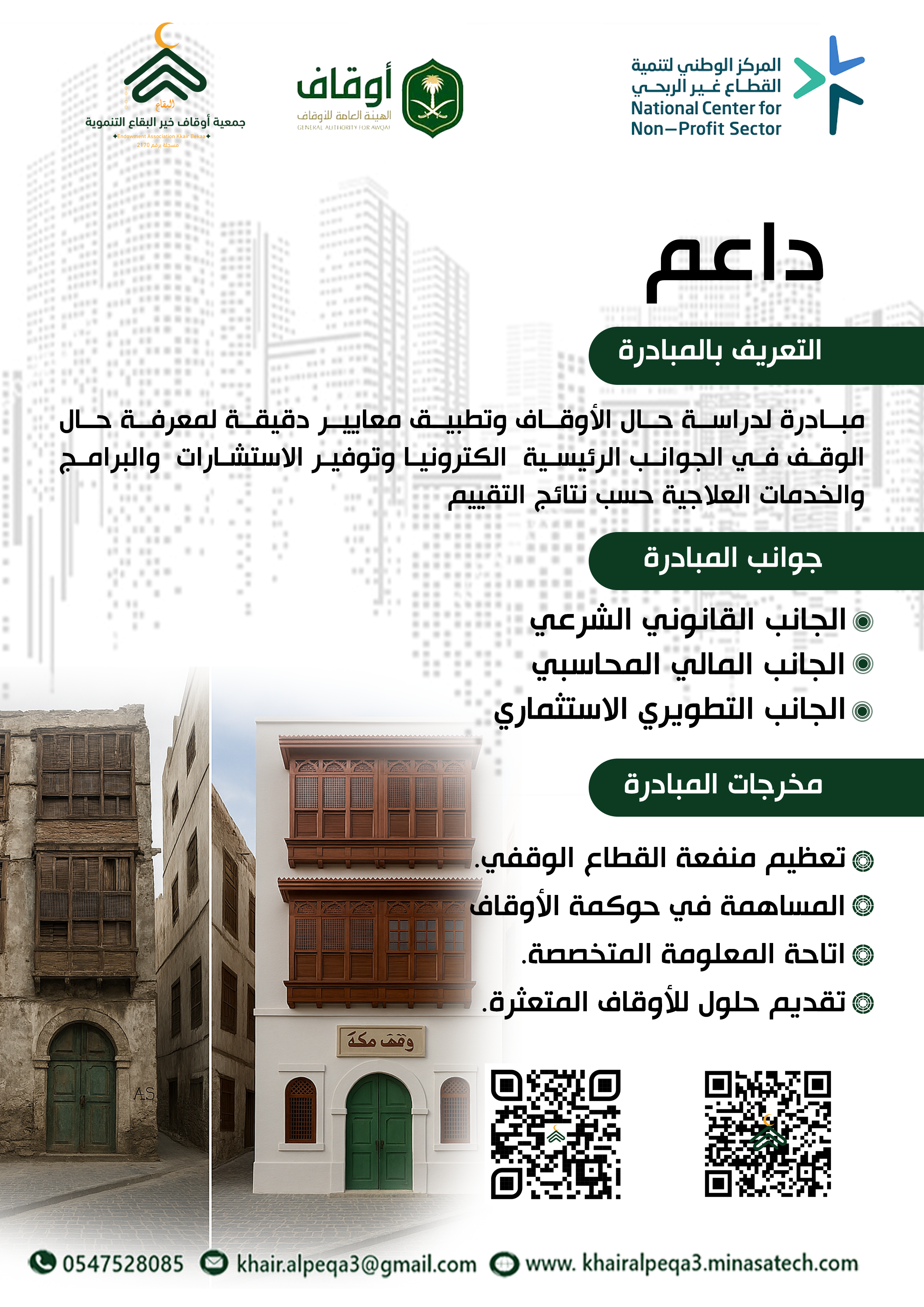 نسعى الى تقديم خدمة متميزة للأوقاف والمستفيدين من الأوقاف والمهتمين بمجال الأوقاف